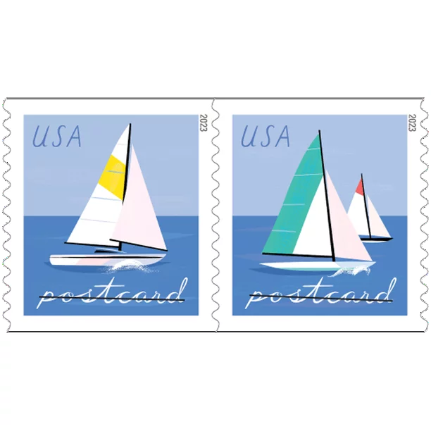 Sailboats will be issued in a pane of 20 and a coil format. The word “POSTCARD” on the stamps indicates their usage value.Like Forever® stamps, these stamps will always be valid for the rate printed on them.